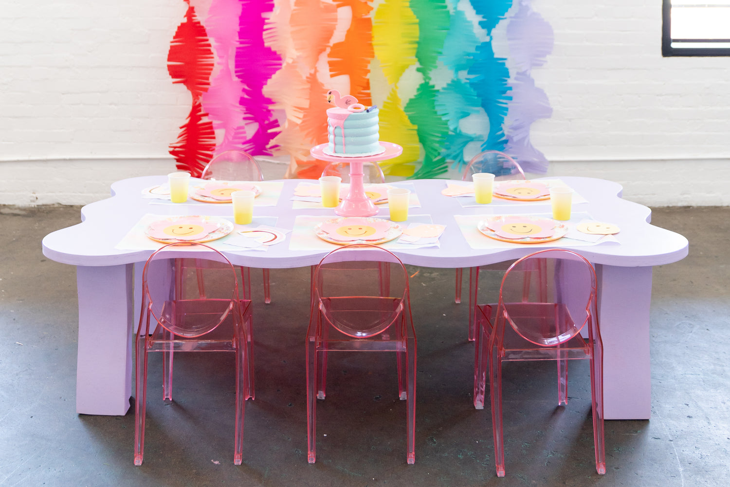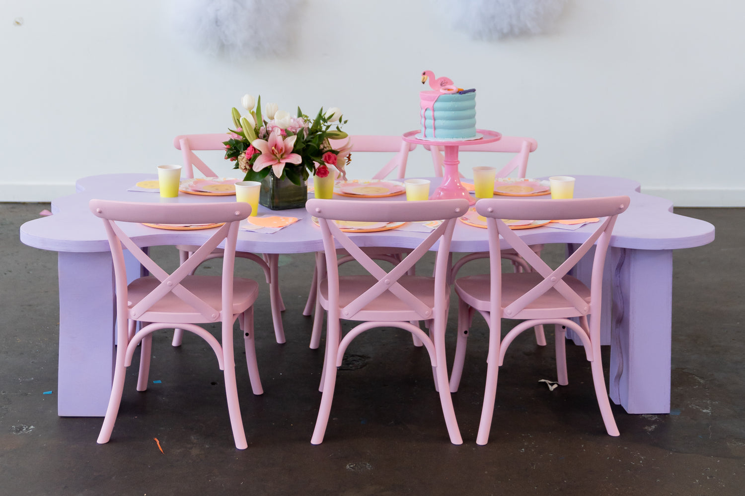 Let the fun bloom with our Pastel Pink Kids Table! It's the perfect way to bring together the little ones and celebrate a birthday. The 6ft table can seat up to 12 kids on chairs. The rental period is up to 6 hours, and delivery and setup fees range from $65 to $125, subject to taxes.