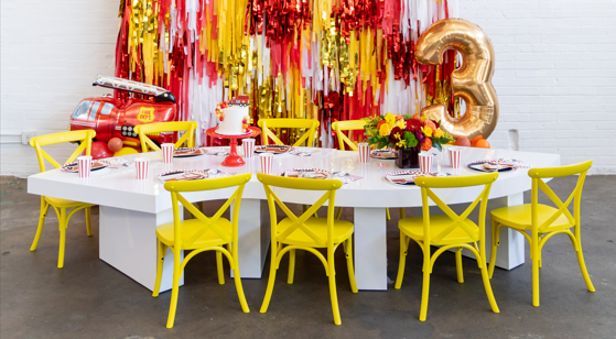 We offer a curated collection of kids event rentals that make parties unforgettable: Bounce houses, Kids tables & seating, Party add-ons